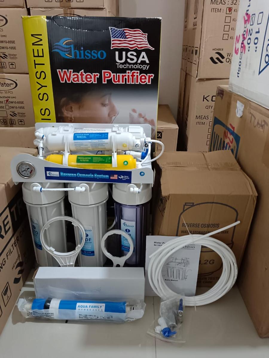 Teknologi reverse osmosis menggunakan membrane ukuran 0,0001 mikron, sehingga dapat menyaring bakteri, garam, dan logam berat.